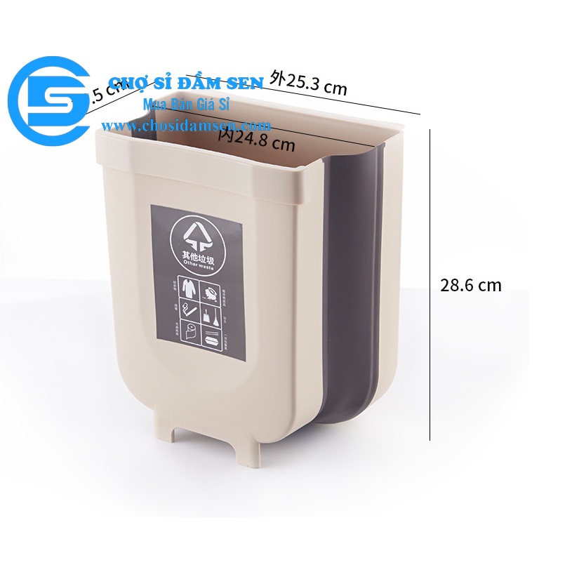 Thùng rác, Giỏ rác VUÔNG đa năng gấp gọn treo kẹp tủ bếp nhựa dẻo siêu bền cho nhà bếp và xe hơi G207-ThungracGG-Vuong