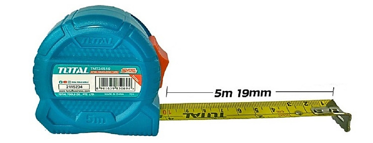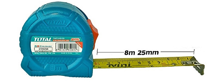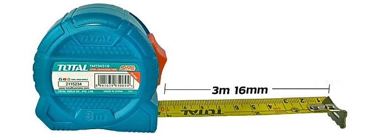Thước cuộn thép nền vàng dài 3m-8m TOTAL là sản phẩm chuyên dụng dùng để đo đạt có khả năng cuộn lại và kéo dài ra một cách nhanh chóng, nhỏ gọn. Thước có 2 loại số đo cơ bản là cm và inch.