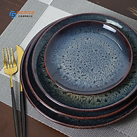 Đĩa tròn men cẩm lai xanh Sapphire hỏa biến cao cấp GOMIE BÁT TRÀNG chuyên dùng cho nhà hàng, khách sạn 5 sao