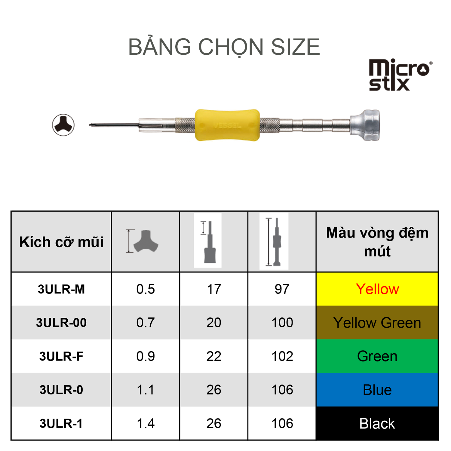 Tô vít có vòng đệm mút cao su mềm mại với các màu khác nhau để phân biệt các size, giúp vặn vít chính xác hơn và có thể điều chỉnh ở mức nhỏ.