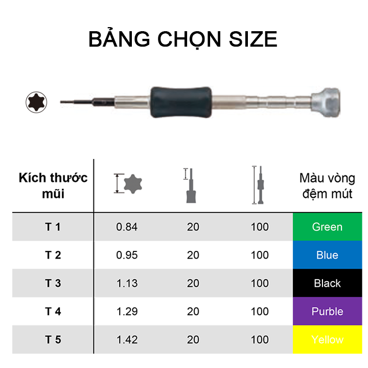 Dùng để siết những ốc vít nhỏ chuyên dùng trong sửa máy tính, điện thoại, máy ảnh, đồng hồ, đồ điện tử,…