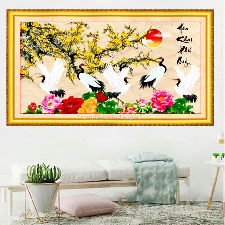 Ý nghĩa: Tranh thêu chữ thập Mai khai phú quý, tranh thêu hoa mang lại không gian sáng đẹp, sung túc. Mai khai phú quý mang lại bình an, phú quý, thịnh vượng.