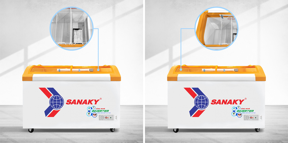 Lớp kính của Tủ đông Sanaky VH-899K3A dược thiết kế dày, chịu lực tốt, độ bền cao nên có thể chống lại những va đập trong quá trình sử dụng, giảm hao nhiệt ra môi trường. Đồng thời việc thiết kế của nắp kính giúp khách hàng dễ dàng quan sát, lựa chọn các loại thực phẩm được bảo quản bên trong tủ.