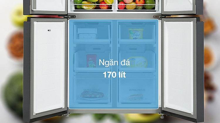 - Dung tích ngăn đá đạt 170 lít, trong đó gồm có 2 hộc ngăn đá, 3 ngăn chứa và 1 ngăn khay làm đá viên.