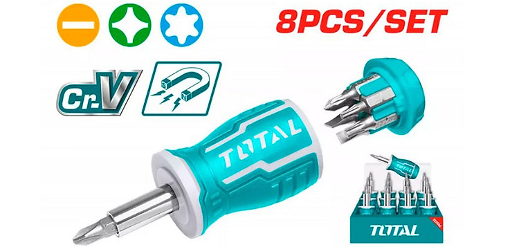 • Tên sản phẩm: Bộ tua vít 8 chi tiết nhỏ gọn đa năng TOTAL TACSDS0706