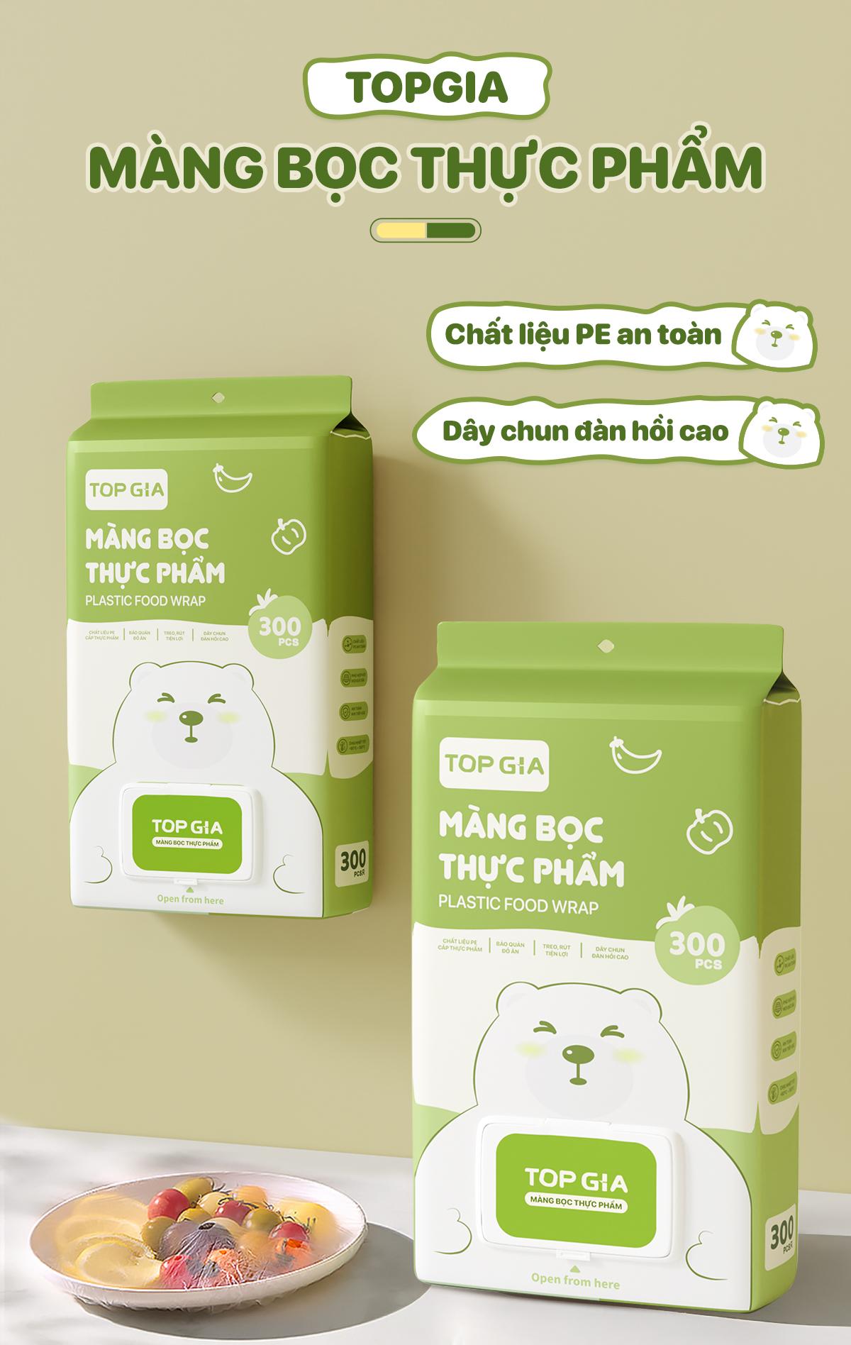 Túi màng bọc thực phẩm treo tường TOPGIA chất liệu PE an toàn, có chun siêu dai đàn hồi cao - Chất liệu PE an toàn - Quy cách: 300 túi/ 1 bịch Thương h...