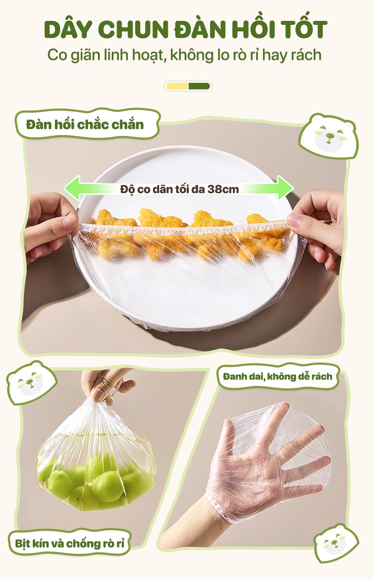 Giới thiệu Túi bọc thực phẩm treo tường TOPGIA, chất liệu PE an toàn, chun siêu dai và đàn hồi cao