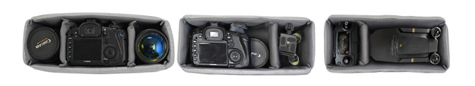 Ấn tượng đầu tiên khi cầm chiếc túi này trên tay, chính là chất vải cao cấp, mang lại cảm giác dày dặn và cứng cáp. Và bên trong túi cũng mang chất lượng tương xứng với vẻ bề ngoài của nó. Các tấm vách ngăn của túi được làm bằng xốp bọc nhung dày 18mm, với độ cứng có thể chịu được sức nặng lớn nhưng vẫn đủ mềm mại để ôm giữ các thiết bị của bạn.