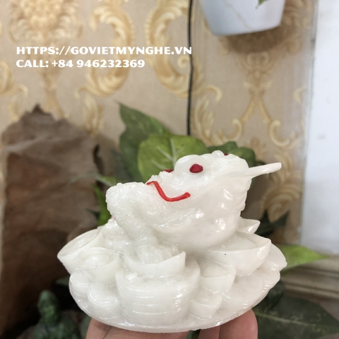 + 01 Tượng đá Cóc Thiềm Thừ 3 chân phong thủy chiêu giữ tài lộc - Màu trắng đá non nước - Cỡ nhỏ - Cao 6cm