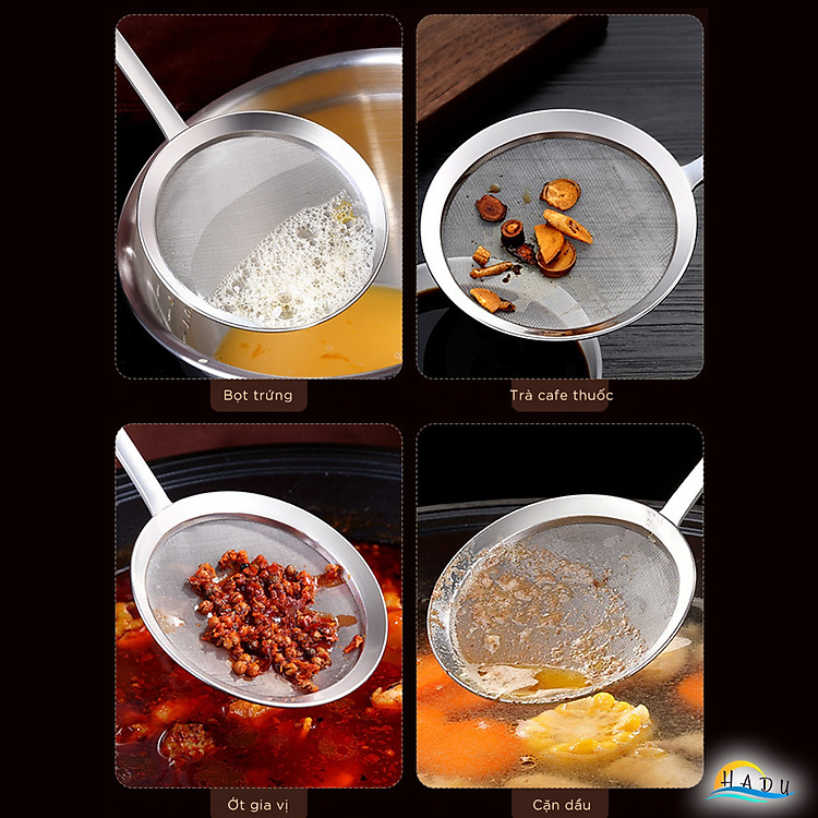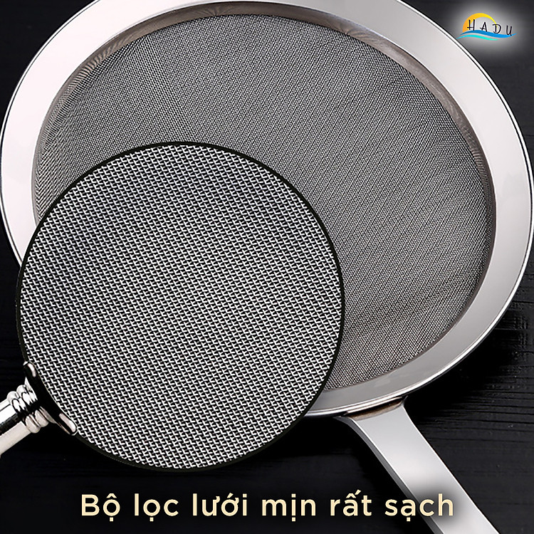 - Rây lọc siêu mịn tiện lợi hơn với nhiều công dụng: hớt váng mỡ, cặn dầu ăn, lọc đậu nành, rửa hạt, lọc cam chanh, lọc trứng, mì, trân châu, sàng bột,