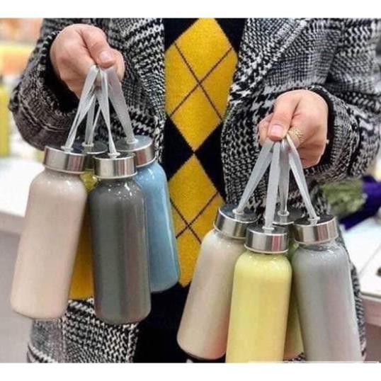 Giới thiệu Có Video + Ảnh thật Bình thủy tinh trơn 350ml có quai xách xám