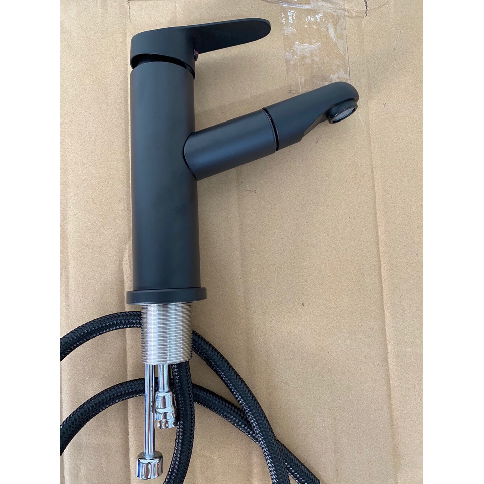 Vòi lavabo nóng lạnh (Dây rút) - Đen, vòi lavabo rửa tay,rửa mặt