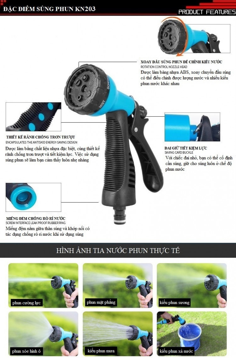 • Vòi tưới xoay đa năng 5 chế độ tưới