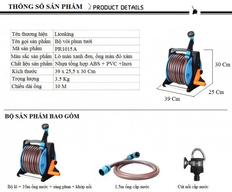Giới thiệu Bộ vòi tưới cây 10 mét ống PR1015A