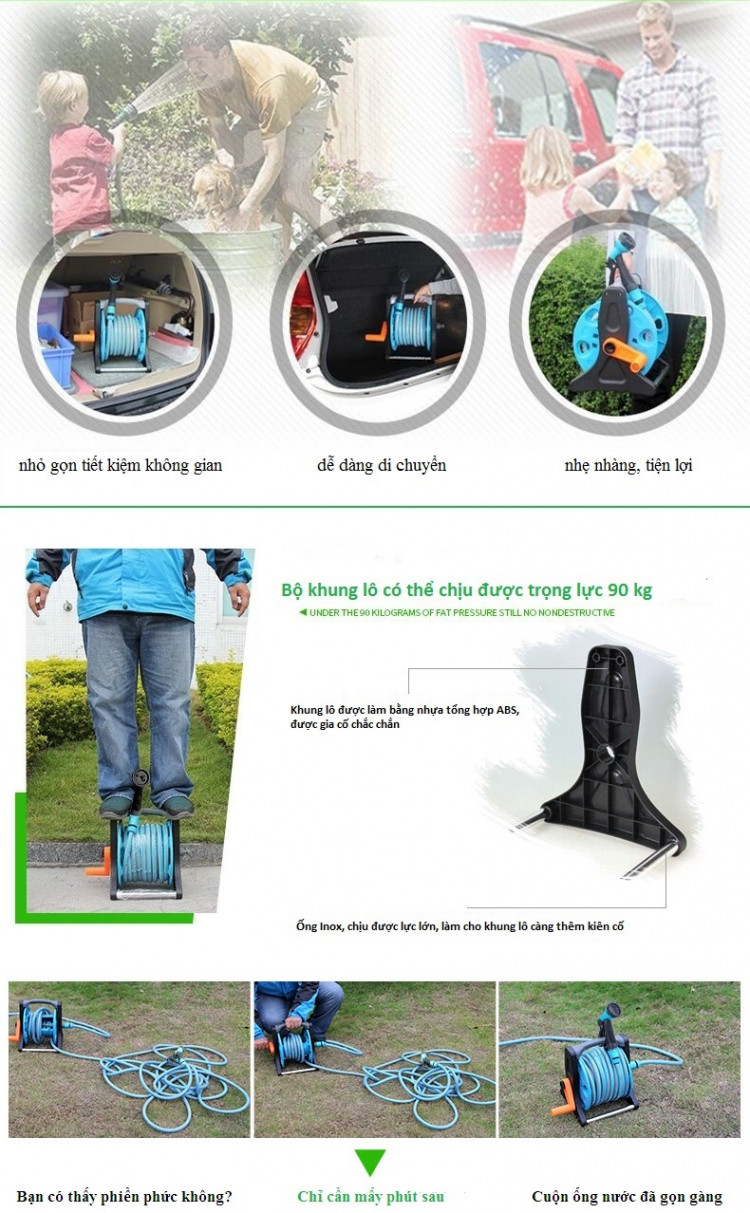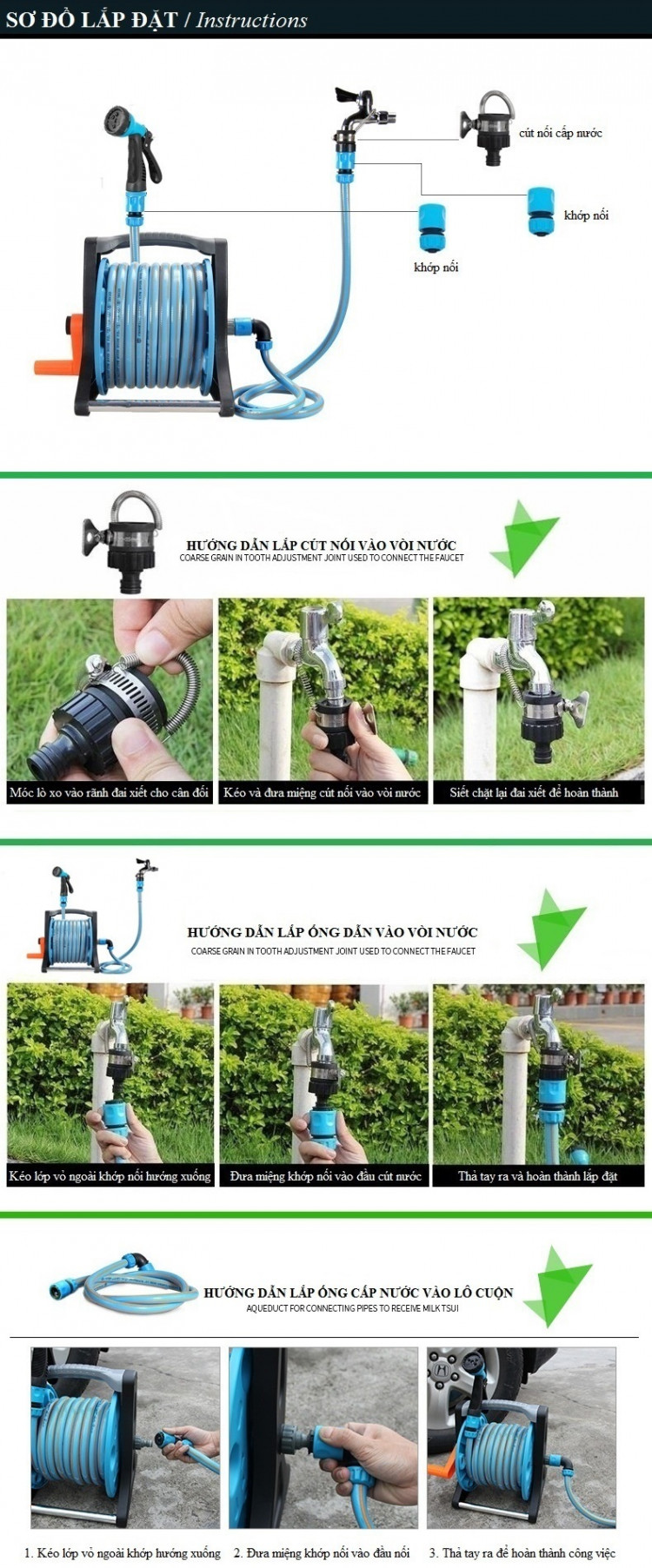 • 10 mét ống trong khung lô và 1.5 mét ống cấp nước 1/2