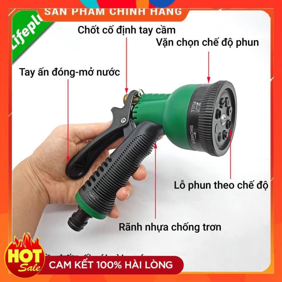 Vòi phun xịt 8 chế độ làm từ nhựa cứng ABS có độ bền cao và khả năng chịu va đập tốt. Sản phẩm được tích hợp 8 chế độ phun xịt khác nhau bao gồm: phun chùm, phun 1 tia nhỏ, phun tia ngang, phun tia dọc, phun 1 tia to, phun hạt như vòi sen, phun sương, phun hình nón. Với thiết kế thông minh, nhỏ gọn và đa năng, sản phẩm có tính ứng dụng cao, thích hợp với nhiều công việc như: tưới cây, rửa xe, xịt rửa vệ sinh nhà cửa…