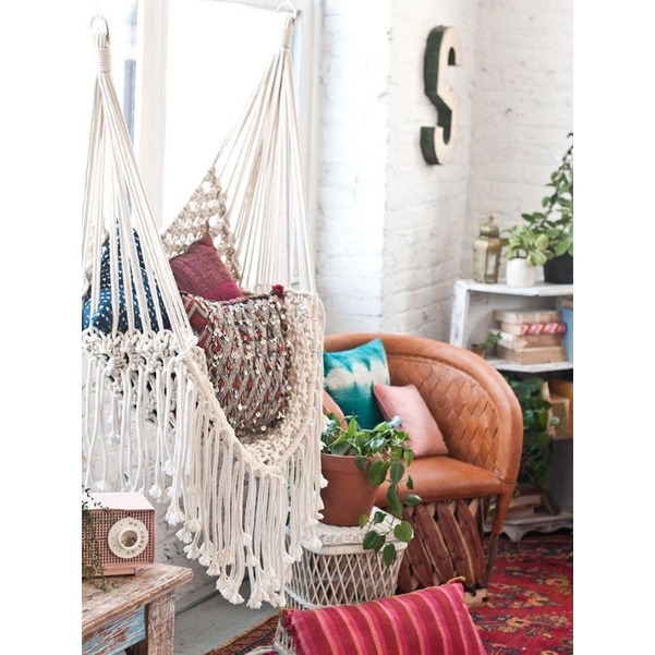 Nhà cửa & Đời sống > Nội thất > Đệm ngồi || Võng treo tường size lớn tết dây cotton êm ái - tặng đệm ngồi tròn